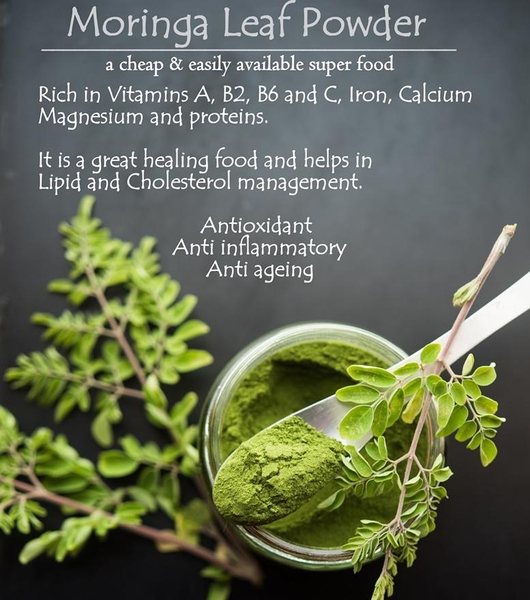 Bột lá chùm ngây có ích lợi cho tim, đặc biệt trong việc kiểm soát lipid máu, ngăn ngừa sự hình thành mảng bám trong động mạch, giảm mức cholesterol, hạ huyết áp.