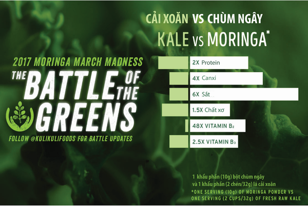 Nhìn chung, chùm ngây và cải xoăn có cùng chất dinh dưỡng. Cả hai đều có hàm lượng chất dinh dưỡng cao hơn các loại thực phẩm khác. Hàm lượng protein, sắt, canxi cao trong chùm ngây giúp nó trở thành một loại siêu thực phẩm. Đặc biệt, lượng vitamin B cao giúp chùm ngây trở thành cái tên được nhắc đến rất nhiều trong thế giới dược phẩm. Nếu bạn chưa dùng thử chùm ngây thì ngay từ sáng mai, hãy bắt đầu thêm bột chùm ngây sấy lạnh vào khẩu phần ăn của mình để có một ngày làm việc tràn đầy năng lượng!