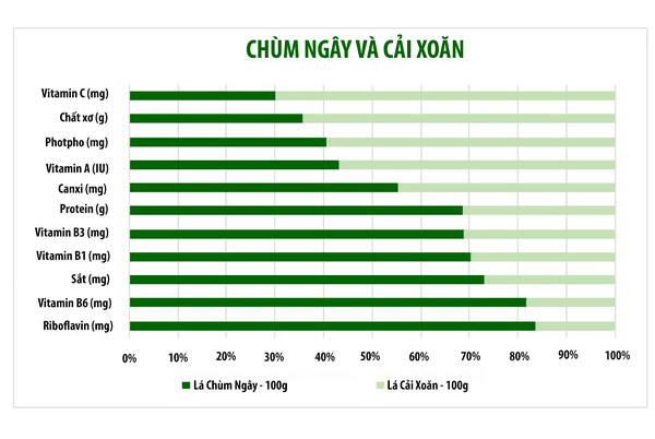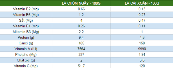 Bảng so sánh lá chùm ngây và lá cải xoăn dưới dạng thô!